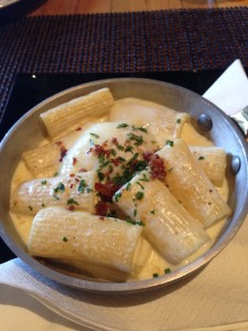 Baked Rigatoni Egg จานนี้กลิ่นชีสหอมมากครับ ชีสซอสหอมเยิ้มมาเลยครับ เบคอนกรุบกรอบๆ มีไข่มาด้วย เติมเกลือ พริกไทยเข้าไป เหมือนอาวุธตีบวกกันเลยครับ ความอร่อยเพิ่มขึ้นมาก rigotani สุกกำลังดี ชีสซอสได้เกลือมากระชับรสชาติ เจอไข่กับเบคอนกรอบเข้าไป พี่หมีโคตรโปรครับ สรุปว่าจานหลักทั้ง 3 จาน พี่หมีประทับจิตหมดครับ อีก 3 จานที่เหลือไม่สั่งเพราะ จานเส้น จานโจ๊ก และ Meat ball ขอผ่านอาหารแนวจีนๆๆฮะ 555555 โจ๊กกับไข่เยี่ยวม้า กับ ผัดหมี่อกเป็ด พี่หมีอยากลองครับ แต่ขอเก็บไว้เป็นของหวานดีกว่าครับ
